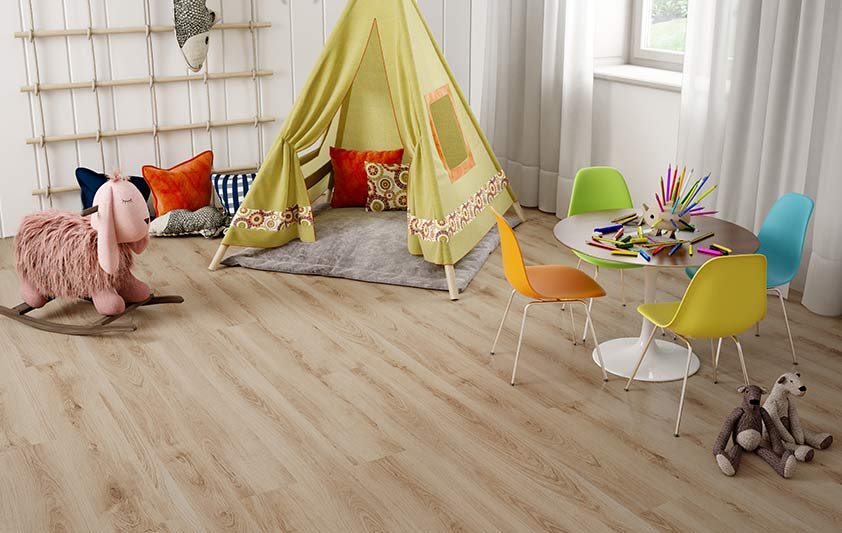 Um padrão descontraído, prático e versátil. Elemento de fusão em ambientes criativos com diversidade de estilos, este piso vinílico é um coringa para a decoração.