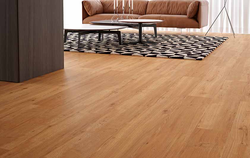 Um piso vinílico com personalidade. Seu padrão homogêneo com nós pequenos e rachos delicados são destaque em qualquer ambiente. Seu tom traz um castanho dourado para diferenciar da madeira tradicional.